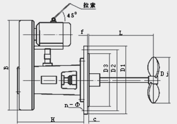 | 攪拌機(jī)型號 | 電機(jī)功率 | 攪拌機(jī)轉(zhuǎn)速 | 攪拌器直徑 | 安 裝 外 型 及 尺 寸 | 攪拌容量 | 重量 | ||||||||