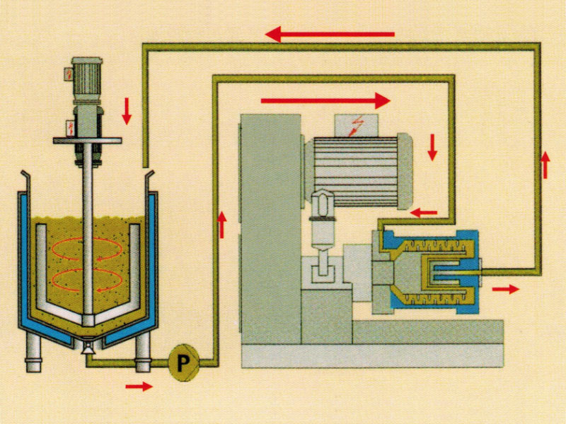 循環(huán)操作只需一個(gè)或兩個(gè)攪拌桶實(shí)現(xiàn)循環(huán)砂磨,而且攪拌桶內(nèi)粗顆粒會(huì)快速沉淀而優(yōu)科學(xué)入砂磨腔砂磨。